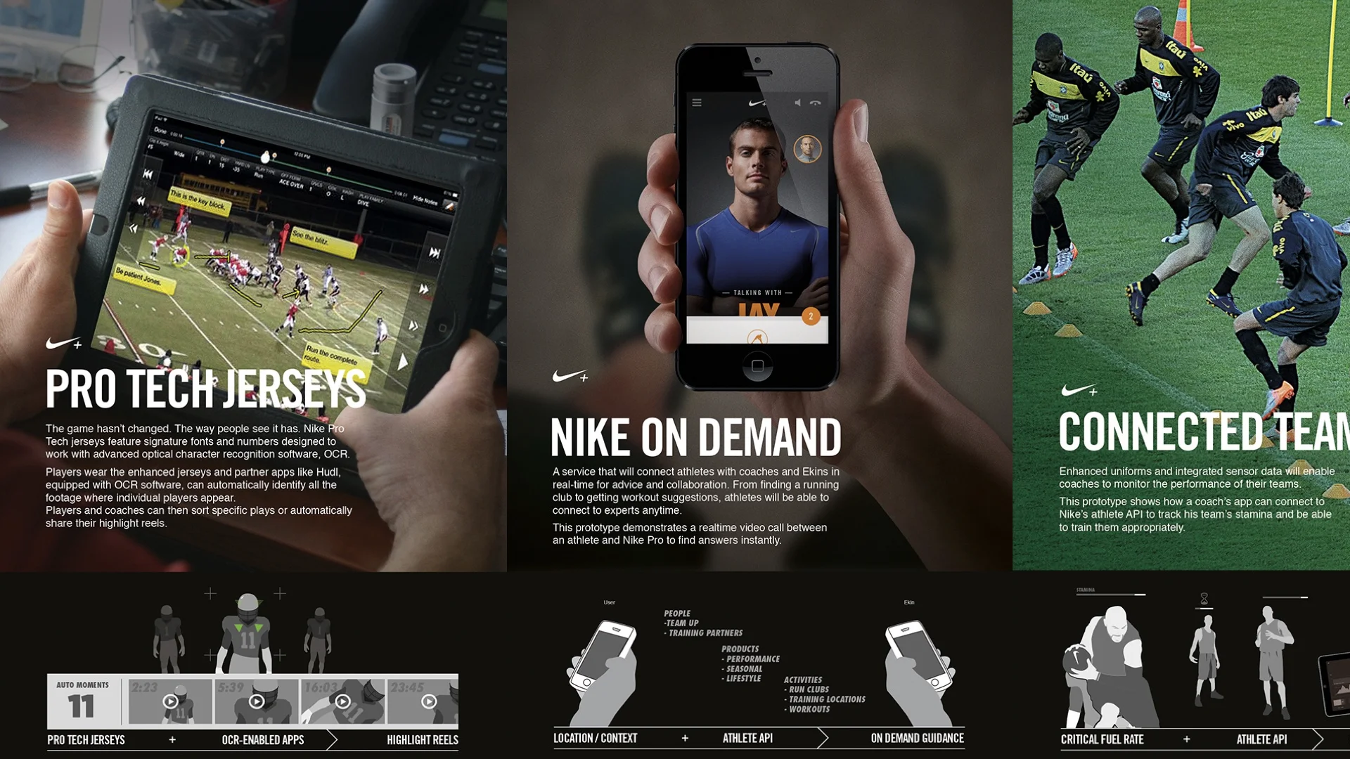 Creative direction and product innovation lead across Nike+. Led the concept and design for future vision projects centered around the connected athlete.